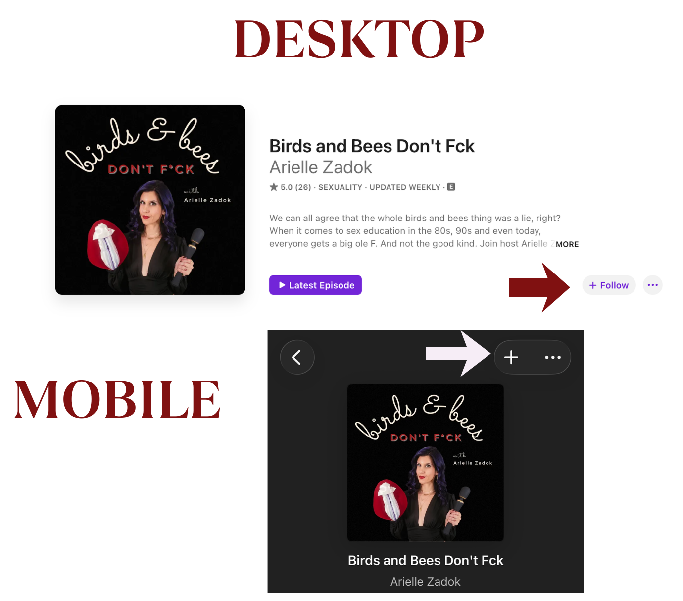 Use the button above to go to the show. On desktop you’ll see a “+ Follow” button all the way to the right under the show description, click that. On mobile you’ll find a “+” sign all the way to the right at the very top of the page, click that.